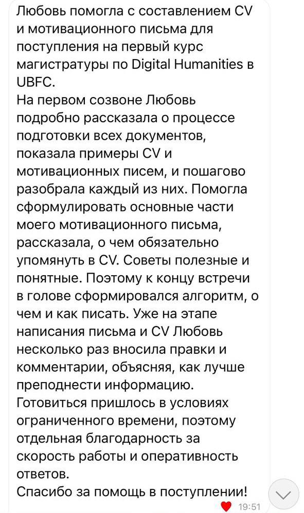 Весь процесс твоей подготовки к поступлению ведётся в личном взаимодействии со мной: zoom-созвоны, общение в личном чате и общем чате с другими поступающими. Плюс, ты будешь добавлен в закрытый телеграм-канал, куда я выкладываю дополнительную эксклюзивную информацию: полезные видео, скринкасты, чек-листы, гайды, таблицы.